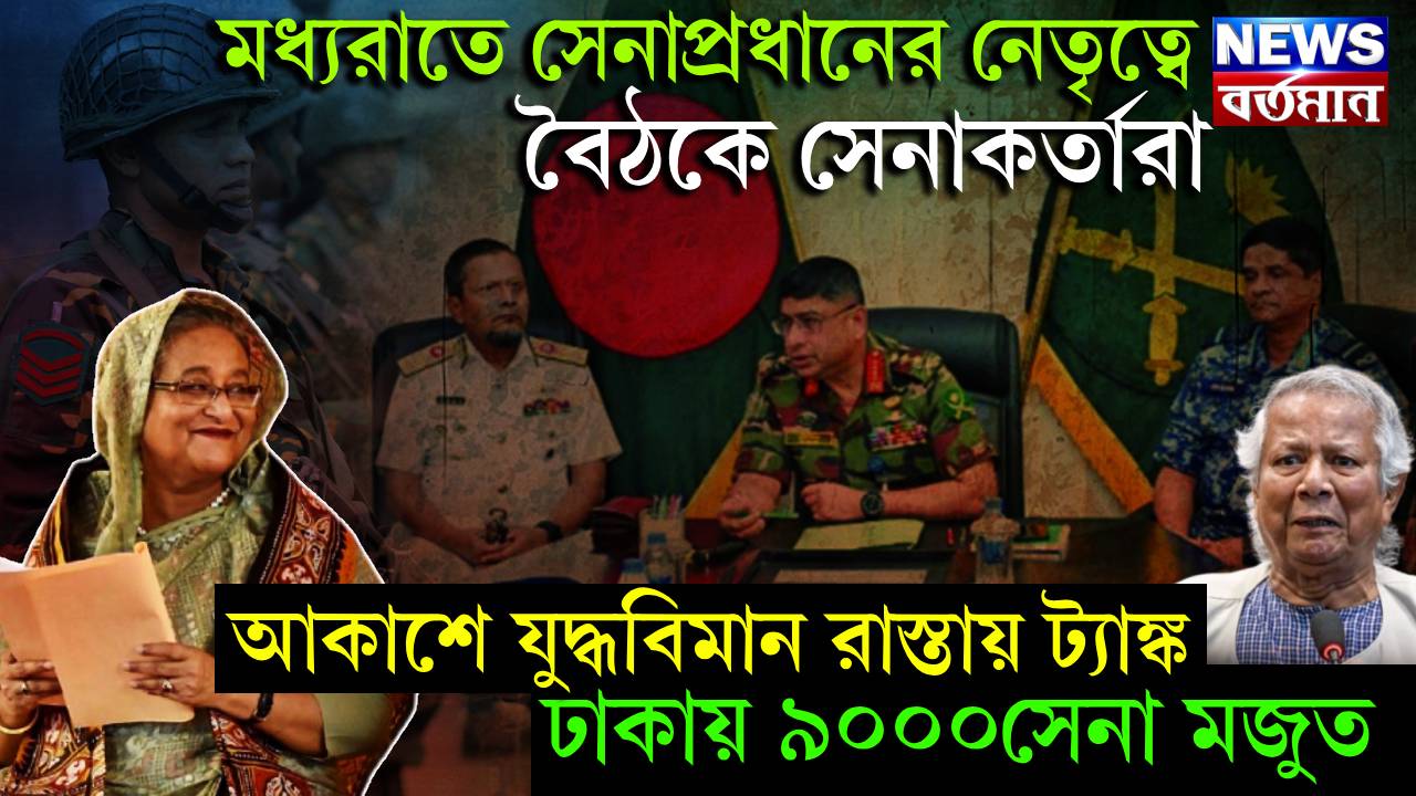 বাংলাদেশের নতুন করে পরিস্থিতি উত্তপ্ত। সূত্র মারফত খবর, সেনাবাহিনীর সদর দফতরে উচ্চপর্যায়ে একটি বৈঠক হয়েছে। সেটা রাত বারোটার সময়। এই বৈঠকের সভাপতিত্ব করেন সেনাপ্রধান জেনারেল ওয়াকার উজ জামান। ছিলেন পাঁচজন লেফটেন্ট জেনারেল, আট জন মেজর জেনারেল এবং বহু ইন্ডিপেন্ডেন্ট ব্রিগেডের ব্রিগেডিয়াররা। এই বৈঠক চলে দেড় ঘন্টা মতো। এই বৈঠকের পর বাংলাদেশের রাষ্ট্রপতি শাহাবুদ্দিন চুপ্পুর সঙ্গে দেখা করেন সেনাপ্রধান। সেই বৈঠক হয় ৪৫ মিনিট। আর তারপর থেকেই তাৎপর্যপূর্ণভাবে দেখা যাচ্ছে, সেনাবাহিনীর তৎপরতা। বাংলাদেশের বিভিন্ন রাস্তায় সেনাবাহিনী ঘোরাফেরা করছে। কার্যতো দখল করেছে তারা। অর্থাৎ সেনাপ্রধান জেনারেল ওয়াকার উজ জামান তার বাহিনীকে সক্রিয় থাকার পরামর্শ দিয়েছেন। তবে খবর হয়েছে, সেনাপ্রধান পরপর যেকটি বৈঠক করেছেন সেই বৈঠকে কার্যত সমস্ত পক্ষকে শান্ত থাকার বার্তা দিয়েছেন। অর্থাৎ হটোকারী সিদ্ধান্তের পথে হাঁটবেন না সেনাপ্রধান বা সেনাবাহিনী। এমনটাই মনে করছেন বাংলাদেশের রাজনৈতিক মহল। তবে দেশকে রক্ষা করতে কঠোর হতে পারেন তিনি। এটাতে কোনও দ্বিমত নেই রাজনৈতিক মহলে।
