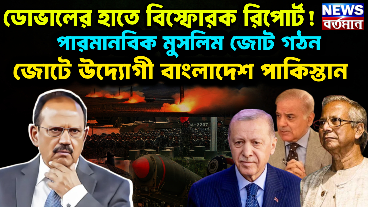 এবার ভারতের বিরুদ্ধে আরও একধাপ এগিয়ে ভয়ঙ্কর পরমাণু যুদ্ধের পরিকল্পনা বাংলাদেশ এবং পাকিস্তানের।  এই উদ্দেশ্য নিয়ে “পারমাণবিক মুসলিম জোট” গঠনের ছক ফাঁস: ডোভালের হাতে আসে সেই বিস্ফোরক রিপোর্ট, ইউনূস-মোদি বৈঠকের পর  থেকেই ভারতের নিরাপত্তা মহলে চাঞ্চল্য! দক্ষিণ এশিয়ার কূটনৈতিক আকাশে হঠাৎই ঘনিয়ে এসেছে অজানা এক ঝড়। ভারতের জাতীয় নিরাপত্তা উপদেষ্টা অজিত ডোভালের হাতে এসেছে একটি গোপন রিপোর্ট, যা শুধু বিস্ফোরক নয়—সম্ভাব্য ভূ-রাজনৈতিক ভূমিকম্পের পূর্বাভাসও। রিপোর্টে দাবি করা হয়েছে, মুসলিম সংখ্যাগরিষ্ঠ কয়েকটি রাষ্ট্র পারমাণবিক সক্ষমতা নিয়ে একটি জোট গঠনের পরিকল্পনায় এগোচ্ছে, যার কেন্দ্রবিন্দুতে রয়েছেন বাংলাদেশের অন্তর্বর্তীকালীন প্রধান উপদেষ্টা অধ্যাপক মুহাম্মদ ইউনূস।এই ঘটনায় নাটকীয় মোড় হল পাকিস্তান সহ বিভিন্ন মুসলিম দেশগুলির সঙ্গে ইউনূসের বৈঠক, সব কিছু জেনেও মোদির নীরবতা, আর ডোভালের তীক্ষ্ণ নজরের ফলে বিষয়টি জানাজানি হওয়ার পর উদ্বিগ্ন হয়ে পড়েছে ভারতের নিরপত্তা মহল। সম্প্রতি ব্যাংককে বিমসটেক সম্মেলনের ফাঁকে ইউনূস ও প্রধানমন্ত্রী মোদির মধ্যে একটি দ্বিপাক্ষিক বৈঠক অনুষ্ঠিত হয়। বৈঠকটি বাইরে থেকে শান্তিপূর্ণ মনে হলেও, ভিতরে ছিল উত্তেজনার চোরা স্রোত।আর তার স্পষ্ট ইঙ্গিত ছিল ভারতের প্রধানমন্ত্রী নরেন্দ্র মোদীর গভীর গাম্ভীর্যের মধ্যে।  ভারতীয় গোয়েন্দা সংস্থাগুলোর নজর ছিল ইউনূসের আগের সফরগুলোর দিকে—বিশেষ করে চীন, তুরস্ক এবং ইরানের সঙ্গে তার বৈঠকগুলোতে। রিপোর্টে উল্লেখ রয়েছে, এই বৈঠকগুলোতে পারমাণবিক প্রযুক্তি, প্রতিরক্ষা সহযোগিতা এবং কৌশলগত জোট গঠনের বিষয় উঠে এসেছে।অনেক বিশেষজ্ঞের মতে  ইউনূসের এই পদক্ষেপগুলি বদলে দিতে পারে দক্ষিন এশিয়ার ভূ-রাজনৈতিক পরিস্থিতি। অনেক বিশ্লেষকের মনে প্রশ্ন জাগছে  “ইউনূসের এই খেলা কি”  দক্ষিণ এশিয়ার শক্তির ভারসাম্য বদলে দেবে?