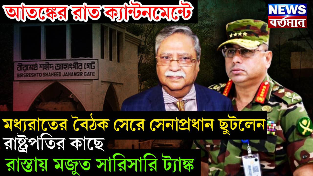 বাংলাদেশের পরিস্থিতি অত্যন্ত ভয়ঙ্কর। এর মধ্যেই সেনাপ্রধান জেনারেল ওয়াকার উজ জামান সিদ্ধ হস্তে নেমে পড়েছেন, বাংলাদেশের পরিস্থিতি আয়ত্তে আনতে। এমনকি সেনানিবাসে চলেছে বৈঠক। যে বৈঠকে উপস্থিত ছিলেন সেনাকর্তা থেকে শুরু করে সেনাবাহিনী। আর এই বৈঠকের পর বাংলাদেশের রাষ্ট্রপতি শাহাবুদ্দিন চুপ্পুরর সঙ্গে দেখা করেন সেনাপ্রধান। সেই বৈঠক চলে ৪৫ মিনিট পর্যন্ত। তারপরই ক্যান্টনমেন্টে সারি সারি ট্যাঙ্ক আর সেনা ঢুকছে। বাংলাদেশের বিভিন্ন এলাকাতে দেখা যাচ্ছে, সেনাবাহিনীর তৎপরতা। শুধু তাই নয়, বিভিন্ন এলাকাতে লক্ষ্য করা যাচ্ছে, অতি সক্রিয়তা। কিন্তু কেন? তবে কি বাংলাদেশের ক্ষমতা সেনার হাতে? নাকি পদ্মাপাড়ে গৃহযুদ্ধ আসন্ন? সেই আশঙ্কা থেকেই এই তৎপরতা?