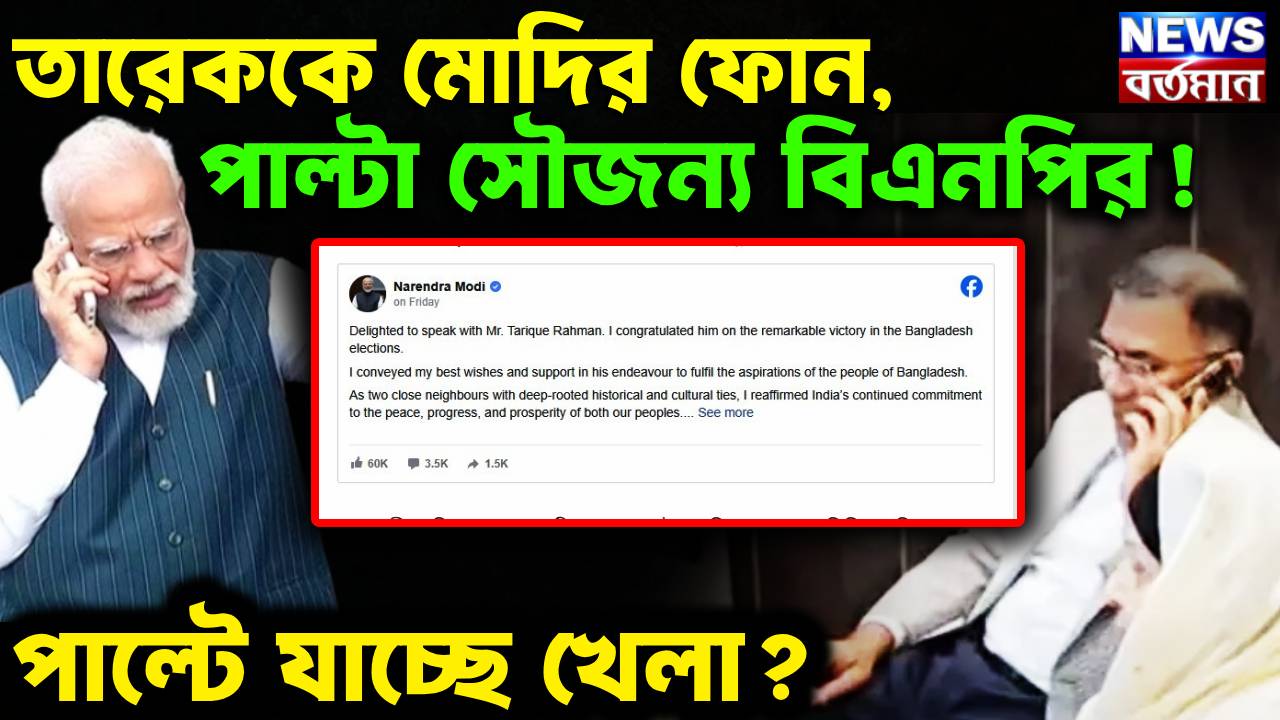 ত্রয়োদশ জাতীয় সংসদ নির্বাচনে বিএনপির নিরঙ্কুশ জয়ের পর ভারত কি প্রতিক্রিয়া দেয় তা নিয়ে অনেকের মধ্যেই কৌতুহল ছিল। যদিও বাংলাদেশের নির্বাচনি ফলাফল স্পষ্ট হতে শুরু করতেই ভারতের প্রধানমন্ত্রী নরেন্দ্র মোদি সামাজিক যোগাযোগ মাধ্যমে বিএনপি চেয়ারম্যান তারেক রহমানকে শুভেচ্ছা ও অভিনন্দন জানিয়ে বাংলা ও ইংরেজি ভাষায় বার্তা দিয়েছিলেন। যা ছিল প্রাথমিক প্রতিক্রিয়া। কিন্তু এখানেই যে নরেন্দ্র মোদি থেমে থাকেননি। নির্বাচনি ফলাফল স্পষ্ট হতেই তিনি সরাসরি ফোন করেছেন তারেক রহমানকে। আর সেটা ভারতের প্রধানমন্ত্রী নিজেই সামাজিক যোগাযোগ মাধ্যমে শেয়ার করেছেন। যা নিয়ে কূটনৈতিক মহলে এখন চর্চা চলছে। শুক্রবার দুপুরে ভারতের প্রধানমন্ত্রী নরেন্দ্র মোদি লিখেছেন, ‘তারেক রহমানের সঙ্গে কথা বলতে পেরে আনন্দিত। বাংলাদেশের নির্বাচনে তাঁর উল্লেখযোগ্য বিজয়ের জন্য আমি তাঁকে অভিনন্দন জানিয়েছি। বাংলাদেশের জনগণের প্রত্যাশা পূরণে তাঁর প্রচেষ্টার জন্য আমি শুভকামনা ও সমর্থন জানিয়েছি’। পাশাপাশি তিনি আরও লেথেন, ‘গভীর ঐতিহাসিক ও সাংস্কৃতিক বন্ধনে আবদ্ধ দুই ঘনিষ্ঠ প্রতিবেশী হিসেবে, আমাদের দুই দেশের জনগণের শান্তি, অগ্রগতি ও সমৃদ্ধির লক্ষ্যে ভারতের অব্যাহত অঙ্গীকার পুনর্ব্যক্ত করেছি’। ওয়াকিবহাল মহলের মতে, আসলে ভারত সরকার স্পষ্ট করতে চাইছে, বিএনপি এবং তারেক রহমানের হাত ধরেই তলানিতে চলে যাওয়া ভারত-বাংলাদেশ সম্পর্ক আবার ট্র্যাকে ফিরিয়ে আনার কাজ শুরু হবে। সেই কারণেই বিএনপির জয়ে দ্রুত উচ্ছ্বাস প্রকাশ করলেন নরেন্দ্র মোদি। অপরদিকে শনিবার জয়ের পর প্রথম সাংবাদিক সম্মেলনে তারেক জানিয়ে দেন, তাঁর সরকারের বিদেশনীতি ঠিক হবে বাংলাদেশের জনগণের মঙ্গলচিন্তা করেই। তাঁর বিদেশনীতিতে বাংলাদেশ এবং বাংলাদেশিদের স্বার্থই প্রথমে ভাবা হবে।