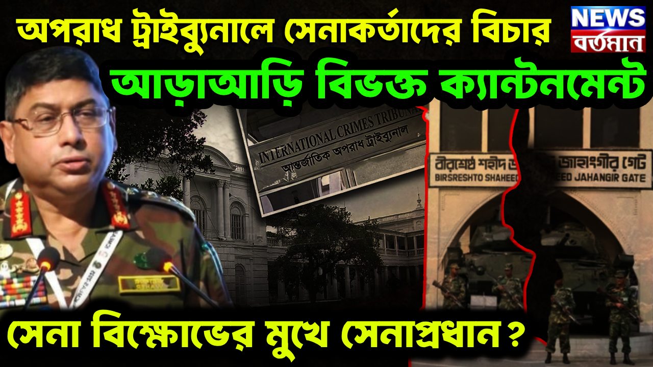 অপরাধ ট্রাইব্যুনালে সেনাকর্তাদের বিচার।  আড়াআড়ি বিভক্ত ক্যান্টনমেন্ট।  সেনা বিক্ষোভের মুখে সেনাপ্রধান