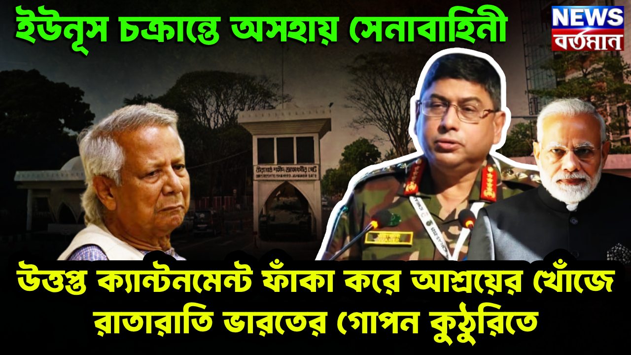 ইউনূস চক্রান্তে অসহায় সেনাবাহিনী উত্তপ্ত ক্যান্টনমেন্ট ফাঁকা করে আশ্রয়ের খোঁজে রাতারাতি ভারতের গোপন কুঠুরিতে