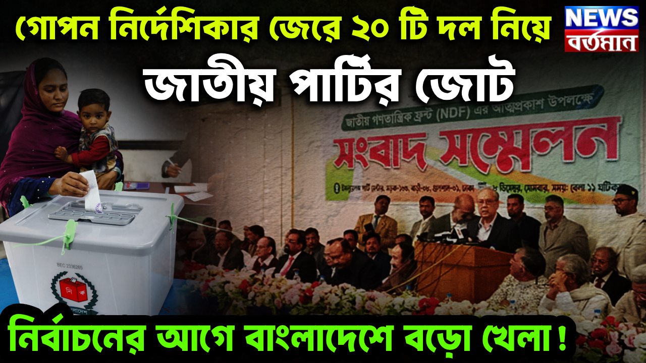 আসছে ভোট। আর তাই, বাংলাদেশের জাতীয় রাজনীতির পরতে পরতে চমক। এবার চমক জোট নিয়ে। হওয়ার কথা ছিল ১৬ দলের জোট। সেটা বেড়ে হল ২০ দলের জোট। নতুন এই জোটের নাম এনডিএফ জাতীয় গণতান্ত্রিক ফ্রন্ট। । জোটের নেতৃত্বে জাতীয় পার্টির নেতা আনিসুল ইসলাম মাহমুদ, রুহুল আমিন হাওলাদার, প্রাক্তন মন্ত্রী আনোয়ার হোসেন মঞ্জুর। গত ৮ ডিসেম্বর এই জোটের কথা ঘোষণা করেন আনিসুল ইসলাম মাহমুদ। সোমবার ঢাকার গুলশানের একটি পার্টি সেন্টারে আনিসুল ইসলাম মাহমুদ এবং আনোয়ার হোসেন মঞ্জুর এই ঘোষণা করেন।