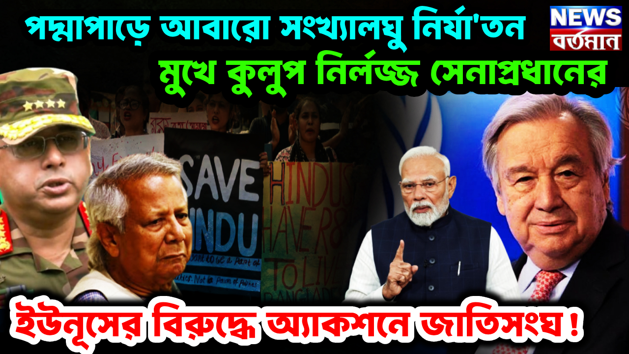 যখনই সংখ্যালঘুদের উপর অত্যাচার নিয়ে প্রশ্ন করা হয়েছে, তখনই মহম্মদ ইউনূস বলেছেন, বাংলাদেশে সেটা চলছে না। এমনকি এই খবর বিশ্ব দরবারে ছড়িয়ে পড়াতে ভারতকে দায়ী করা হয়েছিল। এদিকে সংখ্যালঘুদের উপর নির্যাতনের ছবি চাক্ষুষ করবে গোটা বিশ্ব। ফের কিছু সন্ত্রাসবাদী বাংলাদেশে সংখ্যালঘুদের ঘরবাড়ি পুড়িয়ে, ভাংচুর করে শেষ করে দিল। ফেসবুকে কেউ একজন পোস্ট করেছেন। সেই পোস্টের জবাবে বাংলাদেশে কিছু ধর্মপ্রাণ সন্ত্রাসবাদী মানুষ আইন হাতে তুলে নিলেন। পুলিশ দাঁড়িয়ে দেখল। সেনাবাহিনী কিচ্ছু করতে পারেনি। শনিবার ২০ টি বাড়ি পুরো ধ্বংস করা হল। পুলিশ নীরব দর্শক হয়ে দেখল। রবিবার ফের একই ঘটনা রংপুরে। গানগাছড়া এলাকায় প্রায় ২৫০০ মানুষের বাস। সেখানে তাদের বাড়ি ঘর সব ভাংচুর করা হয়েছে। সোমবার বিকেল পর্যন্ত আলদাতপুরে হিন্দু পল্লি-সহ আশপাশের অন্তত ১০০টি সংখ্যালঘু পরিবার ভয়ে বাড়ি ছেড়ে গিয়েছেন। তাদের পাশে নেই সরকার। নেই প্রশাসন। মুখে কুলুপ এঁটেছেন সেনাপ্রধান। ইউনূসের বিরুদ্ধে কি অ্যাকশন নেবে জাতিসংঘ?