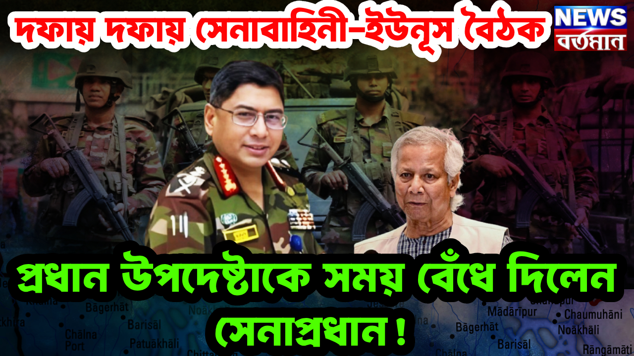 সেনাবাহিনীর তরফ থেকে অন্তর্বর্তী সরকারের প্রধান মহম্মদ ইউনূসকে জানিয়ে দেওয়া হয়েছে, বাংলাদেশে যা হচ্ছে সেটা অগ্রহণযোগ্য। ড. ইউনূস পালটা একমাস সময় চেয়েছে। বাহিনীর তরফ থেকে জানিয়ে দেওয়া হয়েছে, অন্তর্বর্তী সরকার এক মাস সময় পাবে কি না, তা এই মুহূর্তে বলা যাচ্ছে না। গত সোমবার সেনা প্রধান ওয়াকার-উজ-জামান দেখা করেন অন্তর্বর্তী সরকার প্রধান ইউনূস এবং রাষ্ট্রপতি মহম্মদ সাহাবুদ্দিনের সঙ্গে।