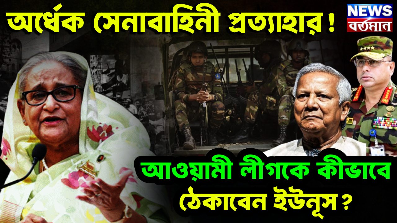 প্রসঙ্গত, গত সোয়া বছর ধরে ভারতের আশ্রয় ও আতিথেয়তায় থাকা সাবেক প্রধানমন্ত্রী শেখ হাসিনাকে আদৌ প্রকাশ্যে মুখ খুলতে দেওয়া উচিত কি না, তা নিয়ে দিল্লি ও ঢাকার মধ্যে যে পরিমাণ কূটনৈতিক তিক্ততা তৈরি হয়েছে তা এক কথায় নজিরবিহীন। এই আবহেই বাংলাদেশের অভ্যন্তরে তৈরি হয়েছে এক অদ্ভুত অস্থিরতা। শেখ হাসিনার দল আওয়ামী লীগ আচমকাই সে দেশে নিজেদের সাংগঠনিক জোর দেখাতে শুরু করেছে। রাজধানী ঢাকা-সহ বাংলাদেশের একাধিক শহরে দলটির অসংখ্য ছোট-বড় ঝটিকা মিছিল অন্তর্বর্তী সরকারকে নাজেহাল করে দিচ্ছে। এই আবহে ৫০ শতাংশ সেনাসদস্যকে মাঠ থেকে তুলে ব্যারাকে পাঠানো শুরু হয়েছে। ফলে প্রশ্ন উঠছে, একদিকে আওয়ামী লীগের তৎপরতা বৃদ্ধি, অন্যদিকে নির্বাচনী ইস্যুতে ক্রমশ উত্তপ্ত হয়ে ওঠা বাংলাদেশ। যা সামলানোর ক্ষমতা এই মুহূর্তে বাংলাদেশ পুলিশ ও অন্যান্য আইনশৃঙ্খলাবাহিনীর নেই। কারণ, গত বছর আগস্টে সরকার পরিবর্তনের অব্যবহিত পরেই যে ভাবে পরিকল্পিতভাবে শতাধিক পুলিশ স্টেশনে হামলা, ভাঙচুর ও অগ্নিসংযোগের ঘটনা ঘটেছিল, তাতে পুলিশ সিস্টেম কার্যত ধ্বংস বাংলাদেশে। পাশাপাশি অভিযোগ, ওই সময় তিন হাজারের বেশি পুলিশ কর্মী ও আধিকারিককে খুন করা হয়েছিল। তাতে পুলিশের সাহস ও নৈতিকতা কার্যত নষ্ট হয়েছে। রাজনৈতিক ওয়াকিবহাল মহলের একটি অংশ অবশ্য দাবি করছে, ইউনূস আসলে চাইছেন যে আসন্ন নির্বাচন পিছিয়ে যাক। আর সেই পরিকল্পনা বাস্তবায়ন করতেই সেনাবাহিনীকে তুলে নেওয়া শুরু হয়েছে। ফলে যেটুকু অরাজক পরিস্থিতি নিয়ন্ত্রণে ছিল, সেটাও যাবে। আর এই সুযোগে ভোট পিছিয়ে দেওয়ার ফন্দি আঁটবে ইউনূস ও তাঁর দোসররা।