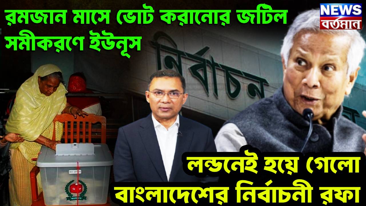 বাংলাদেশে নির্বাচন নিয়ে সাম্প্রতিক কালে প্রবল চাপে পড়েছিলেন মহম্মদ ইউনূস। বিভিন্ন মহল থেকে ডিসেম্বরে নির্বাচনের জন্য অবস্থান নিতে দেখা গিয়েছিলো অন্তরবর্তী সরকারের বিরুদ্ধে। চলতি বছরের ডিসেম্বরে হবে নির্বাচন অন্তর্বর্তী সরকারের প্রধান উপদেষ্টাকে কার্যত সময়সীমা বেঁধে দিয়েছিলেন বাংলাদেশের সেনাবাহিনী প্রধান ওয়াকার উজ জামান। নির্বাচন নিয়ে সুর চড়াতেও দেখা গিয়েছিলো বিএনপিকে। কিন্তু এই সমস্ত দাবীকে উপেক্ষা করেই ঈদের আগে ইউনূস ঘোষণা করেন, ২০২৬ সালের এপ্রিল মাসের আগে নির্বাচন সম্ভব নয় বাংলাদেশে। কিন্তু অন্তরবর্তী সরকারের এই সিদ্ধান্ত সামনে আসলে এই সিদ্ধান্ত মানতে পারেনি বিএনপি। অন্তরবর্তী সরকার ও বিএনপির এই বিপরীত অবস্থান নিয়ে জল্পনাও সৃষ্টি হয়েছিল। সেই আবহেই বিএনপির ভারপ্রাপ্ত চেয়ারম্যান তারেক রহমানের সঙ্গে বৈঠক করলেন ইউনূস। এই বৈঠকে মূলত বাংলাদেশের নির্বাচন নিয়ে আলোচনা হবে, তেমনই জল্পনা তৈরি হয়েছিল।