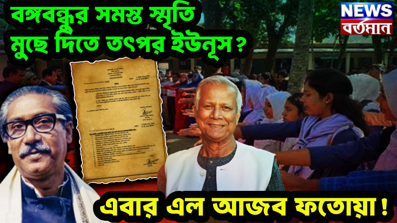 শেখ হাসিনা সরকারের পতনের পর বাংলাদেশের বেশ কয়েকটি পাঠ্যপুস্তকে নানান পরিবর্তন করে ছিল মুহাম্মদ ইউনূসের অন্তর্বর্তীকালীন সরকার। তাতে মূলত বাদ গিয়েছিল মুক্তিযুদ্ধের ইতিহাস ও বর্ণণা। বাদ গিয়েছিল মুজিবের গল্প। এবার কোপ পড়ল সে দেশের স্কুল-কলেজের পড়ুয়াদের জন্য নির্দিষ্ট শপথবাক্যে। বাংলাদেশের শিক্ষা মন্ত্রণালয়ের নয়া নির্দেশিকায় যে শপথবাক্য পাঠ করতে বলা হয়েছে তাতে তিনটি গুরুত্বপূর্ণ পরিবর্তনের বিষয় উল্লেখ রয়েছে। নতুন শপথে বাদ পড়েছে ১৯৭১ সালের মহান মুক্তিযুদ্ধ ও মুক্তিসংগ্রামের নেতা শেখ মুজিবুর রহমানের অবদানের কথা। বাদ পড়েছে ‘অসাম্প্রদায়িক চেতনায়’ দেশ গড়ার প্রত্যয়। অর্থাৎ, একদিকে যেমন মহান মুক্তিযুদ্ধকেই অস্বীকার করার প্রচেষ্টা, অন্যদিকে বাংলাদেশকে ইসলামিক দেশে রূপান্তরের প্রচেষ্টাও এবার প্রকাশ্যে চলে এল। এখানেই শেষ নয়, বাংলাদেশের অতীত ইতিহাস সুকৌশলে মুছতে এবার সে দেশের রাজশাহী বিশ্ববিদ্যালয়ের ১২টি স্থাপনার নামও বদল করে ফেলল কর্তৃপক্ষ। গত ২২ মে অনুষ্ঠিত বিশ্ববিদ্যালয়ের ৫৩৯তম সিন্ডিকেট সভায় বেশ কয়েকটি ভবনের নাম পরিবর্তন করা হয়েছে বলেই খবর। সবমিলিয়ে বাংলাদেশ যে ক্রমেই মৌলবাদীদের খপ্পরে পড়ে যাচ্ছে তা এখন দিনের আলোর মতোই পরিস্কার।