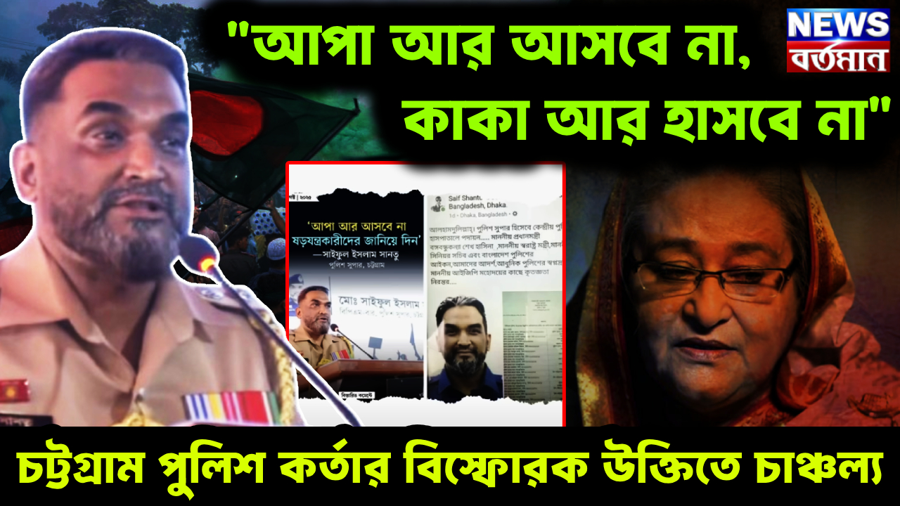 ৫ ই আগস্ট জুলাই ঘোষণাপত্র প্রকাশ করা হল। প্রকাশ করলেন প্রধান উপদেষ্টা মহম্মদ ইউনূস।উপস্থিত ছাত্রনেতা, উপদেষ্টা থেকে প্রশাসনিক ক্ষেত্রে সমস্ত আধিকারিক। আর সেখানে দাঁড়িয়ে চট্টগ্রামে পুলিশের এসপি জুলাই ঘোষণাপত্র অনুষ্ঠানে একটি মন্তব্য করেছেন। যা ঘিরে রীতিমত আলোচনা চলছে। এমন সামাজিক যোগাযোগ মাধ্যমে ভাইরাল হয়েছে। তিনি বলেছেন, আপা আর আসবে না। কাকা আর হাসবে না। কিন্তু হঠাৎ একজন পুলিশ কর্তা রাজনৈতিক কথাবার্তা কেন বলতে গেলেন? এই প্রশ্নে সমালোচনার জন্ম দিয়েছে। এমনকি শেখ হাসিনা সরকারের সময় অনেকে অভিযোগ তুলেছিলেন। অনেকে বলেছিলেন, তার জমানায় সমস্ত পুলিশ আওয়ামী লীগ হয়ে গিয়েছিল। পরিবর্তিত পরিস্থিতিতে সেই একই পরিস্থিতি লক্ষ্য করা যাচ্ছে। তাহলে আর বদল ঘটলো কোথায়? তবে এই পুলিশ কর্মকর্তার বিরুদ্ধে অতীতে বহু বিষয়ে উঠে এসেছে। যেটা ঘিরে আলোচনা চলছে রাজনৈতিক আঙিনায়।