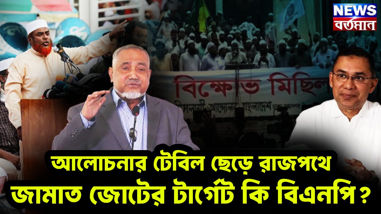 আগামী ফেব্রুয়ারিতে নির্বাচন হলেও জুলাই সনদের ভিত্তিতে জাতীয় নির্বাচন অনুষ্ঠান করতে হবে। এই দাবি সহ ৫ দফা দাবিতে জামায়াতে ইসলামী সহ সাতটি দল একযোগে মিছিল করল দেশের সমস্ত বিভাগীয় শহরে। মিছিল হয় রাজধানী ঢাকাতেও। বিক্ষোভের আগে বায়তুল মোকাররম, জাতীয় প্রেসক্লাবসহ আশপাশের এলাকায় দলগুলো সংক্ষিপ্ত সমাবেশ করে। জানা যায়, জামায়াতের ঢাকা মহানগর উত্তর ও দক্ষিণ শাখার উদ্যোগে এই কর্মসূচি পালন করে। এরপর একই দাবিতে শুক্রবার দেশের সব বিভাগীয় শহরে বিক্ষোভ মিছিল করে জামায়েতি ইসলামী। অনেকে বলছেন, আলোচনার টেবিল ছেড়ে জামায়েতি ইসলামীর রাজপথে নামার কারণ হল, তাদের দাবিগুলিকে গোটা দেশের মানুষকে জানান দেওয়ার জন্য। তবে কি ডাকসু, জাকসুতে নিজেদের জায়গা পাকা করে সংসদীয় নির্বাচনের লক্ষ্য নিয়ে এগোচ্ছে জামায়েতি ইসালামী। পথের কাঁটা যাতে বিএনপি না হয়, তাই কি এবার বিএনপি টার্গেট?