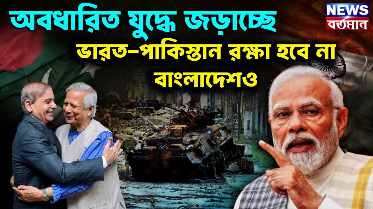 এই কল্পচিত্র নির্মাণের কারণ রয়েছে। কারণ ভারত এবং পাকিস্তান কি যুদ্ধে জড়িয়ে পড়তে চলেছে বলে বাতাসে খবর ভাসতে শুরু করেছে। আর যুদ্ধে জড়িয়ে পড়লে অবাক হওয়ার কিছু থাকবে না। আর সেই যুদ্ধে জড়িয়ে যাবে বাংলাদেশও। পাকিস্তানের চরিত্র কেমন, সেটা বুঝতে পেরেছেন রুশ প্রেসিডেন্ট ভ্লাদিমির পুতিন। আর সে কারণে ইসলামাবাদের সঙ্গে মস্কোর কয়েক কোটি যোজন দূরত্ব তৈরি হয়েছে। অপর দিকে, চিনের সঙ্গে পাকিস্তানের সম্পর্ক বেশ গলায় গলায়। তার একটি কারণ পাকিস্তানে সে দেশের বিনিয়োগ। পাশাপাশি চিনের থেকে পাকিস্তান সামরিক দিক থেকে কৌশলগত সমর্থন আদায়ের চেষ্টাও চালাবে। কিন্তু সেটা কতদূর সম্ভব হবে তা নিয়ে কিন্তু যথেষ্ট সন্দেহ রয়েছে।
