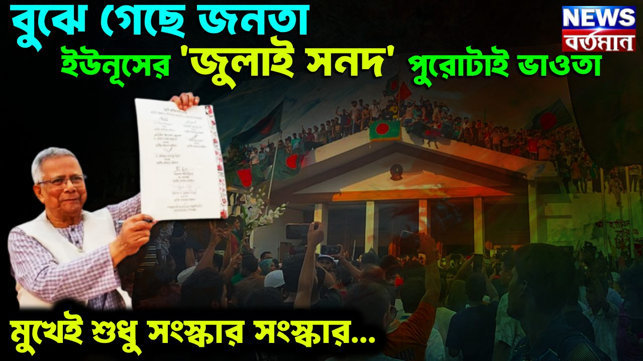 আর জুলাই সনদে বৈষম্য দূর করার বিষয়ে একটি শব্দ খরচ করা হয়নি। কৃষি, ভূমি সংস্কারের কোনও কথা বলা হয়নি। এমনকী বাংলাদেশ জলবায়ু যেটি বেশ ঝুঁকি, তা নিয়ে একটি শব্দ খরচ করা হয়নি। নারীদের আসন সংখ্যা বাড়িয়ে ১০০ করা হয়েছে। যে ইউনূস বুক ফুলিয়ে থ্রি-জিরোর পক্ষে সওয়াল করে এসেছেন, সেই থ্রি জিরো – অর্থাৎ শূন্য দারিদ্র, শূন্য বেকারত্ব এবং শূন্য কার্বণ নিঃসরণ নিয়ে একটি শব্দও খরচ করা হয়নি। এই নিয়ে তাঁর একটা বই আছে, যার শিরোনাম ‘আ ওয়ার্ড অফ থ্রি জিরো’। তাহলে রইল কী?