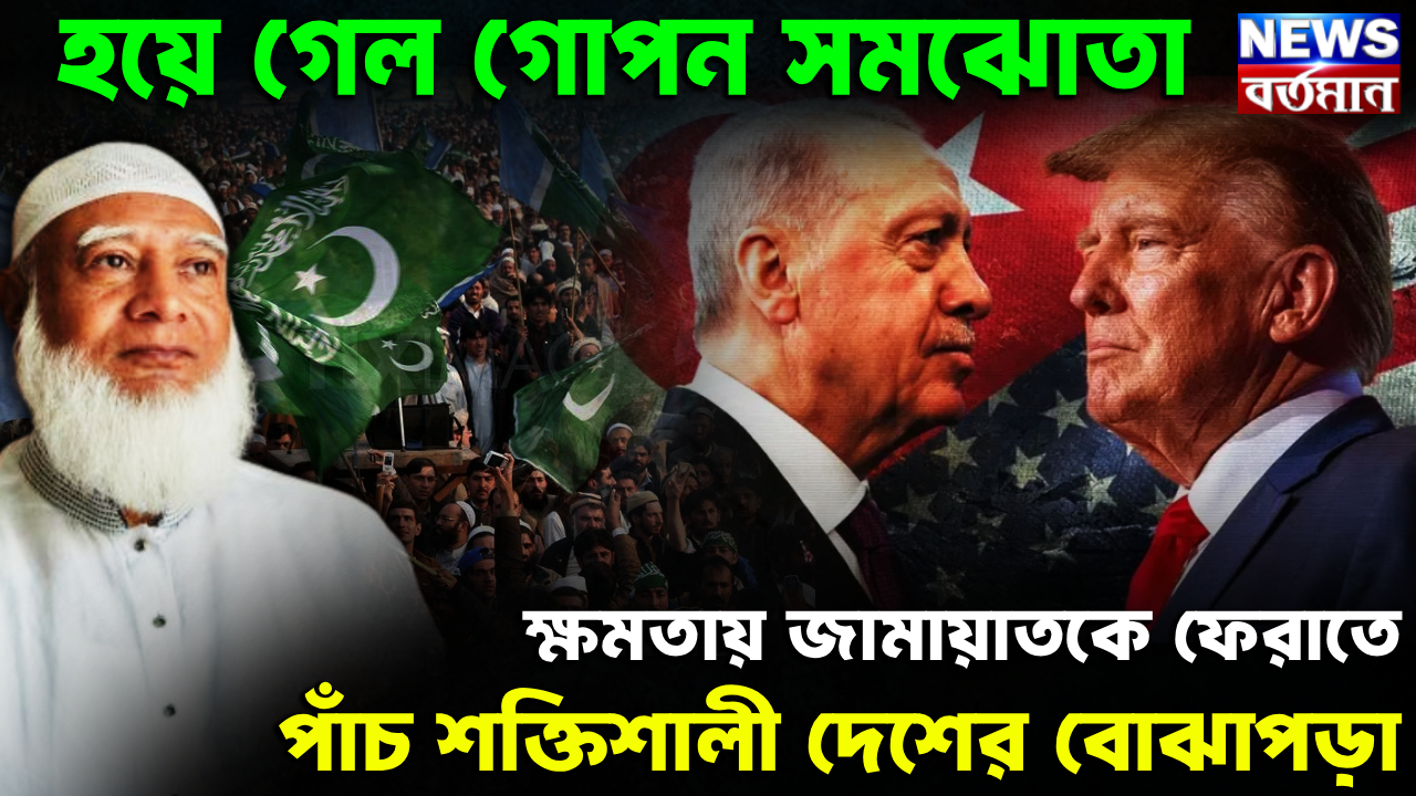 আমাদের পাঠক এবং দর্শক শুনলে অবাক হবেন, বিশ্বের পাঁচটি দেশ চাইছে আগামীদিনে বাংলাদেশ শাসন করুক জামায়াত। শুনতে খটকা লাগলেও এটাই ঘটেছে। ওই পাঁচ দেশের হেভিওয়েট নেতাদের সঙ্গে জামাতের শীর্ষনেতাদের বৈঠক হয়েছে। একটি দেশের নাম অনুমান করা খুব সহজ। দেশটি হল পাকিস্তান। আরও সুস্পষ্টভাবে সে দেশের গুপ্তচর সংস্থা। কিছুদিন আগে তারা বাংলাদেশে তাদেরল হাইকমিশনে একটি দফতর খুলেছে। বাকি চারটি দেশের মধ্যে তিনটি দেশের নাম ফাঁস করতে হয়। ওই তিন দেশ হল তুরস্ক, মিশর এবং চিন। আর এই চারদেশকে নিয়ন্ত্রণ করছে আমেরিকা।
