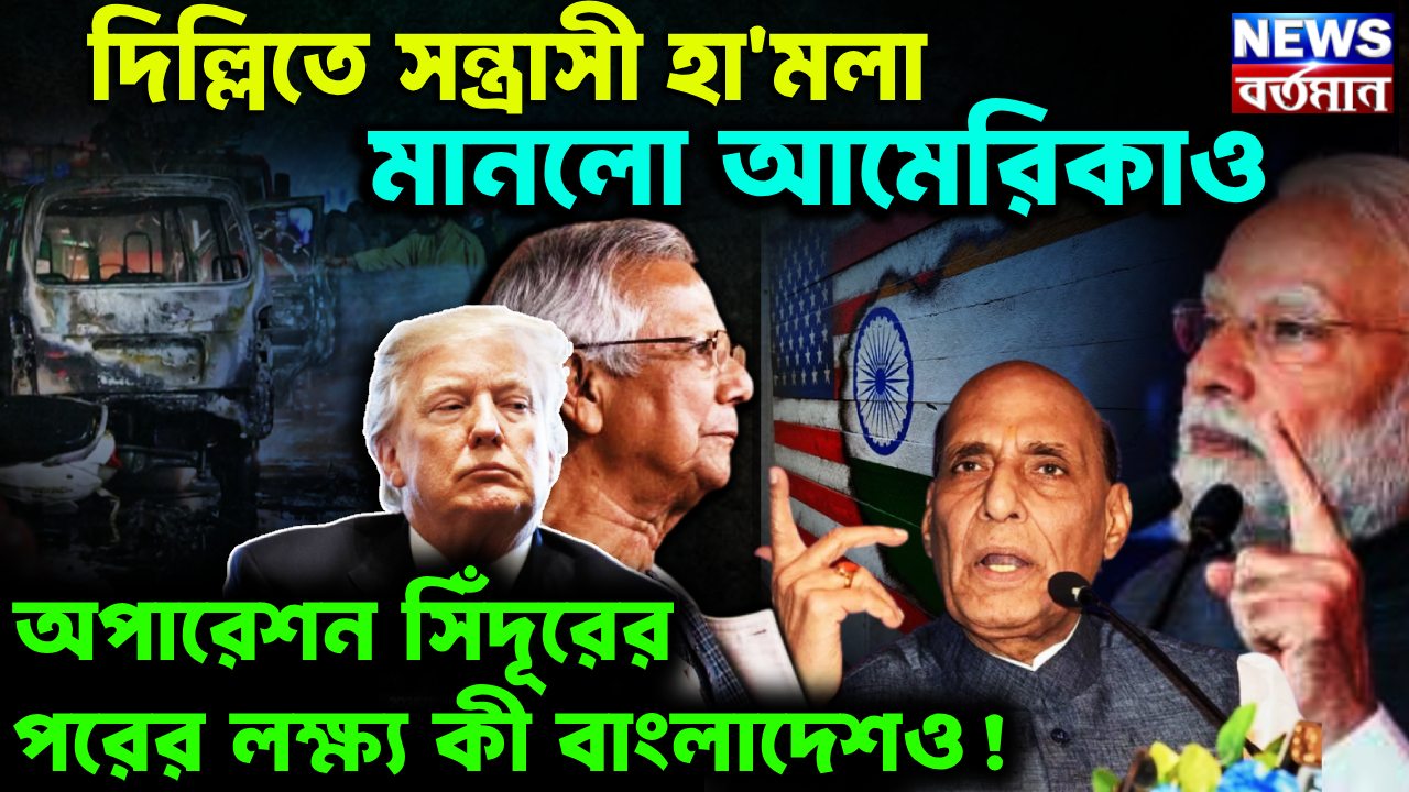 অর্থাৎ, দিল্লিতে যে সন্ত্রাসী হামলা হয়েছে তা আমেরিকাও মেনে নিল। আর সন্ত্রাসী হামলাকে যে ভারত যুদ্ধের হুমকি হিসেবেই দেখে সেটাও কার্যত মেনে নিল আমেরিকা। এবার দেখার ভারত অপারেশন সিঁদূরের পরবর্তী পর্যায় শুরু করে কিনা। আর বিশেষজ্ঞদের ধারণা, এবার শুরু পাকিস্তান নয়, বাংলাদেশকেও অপারেশন সিঁদূরের টার্গেট করা হবে।