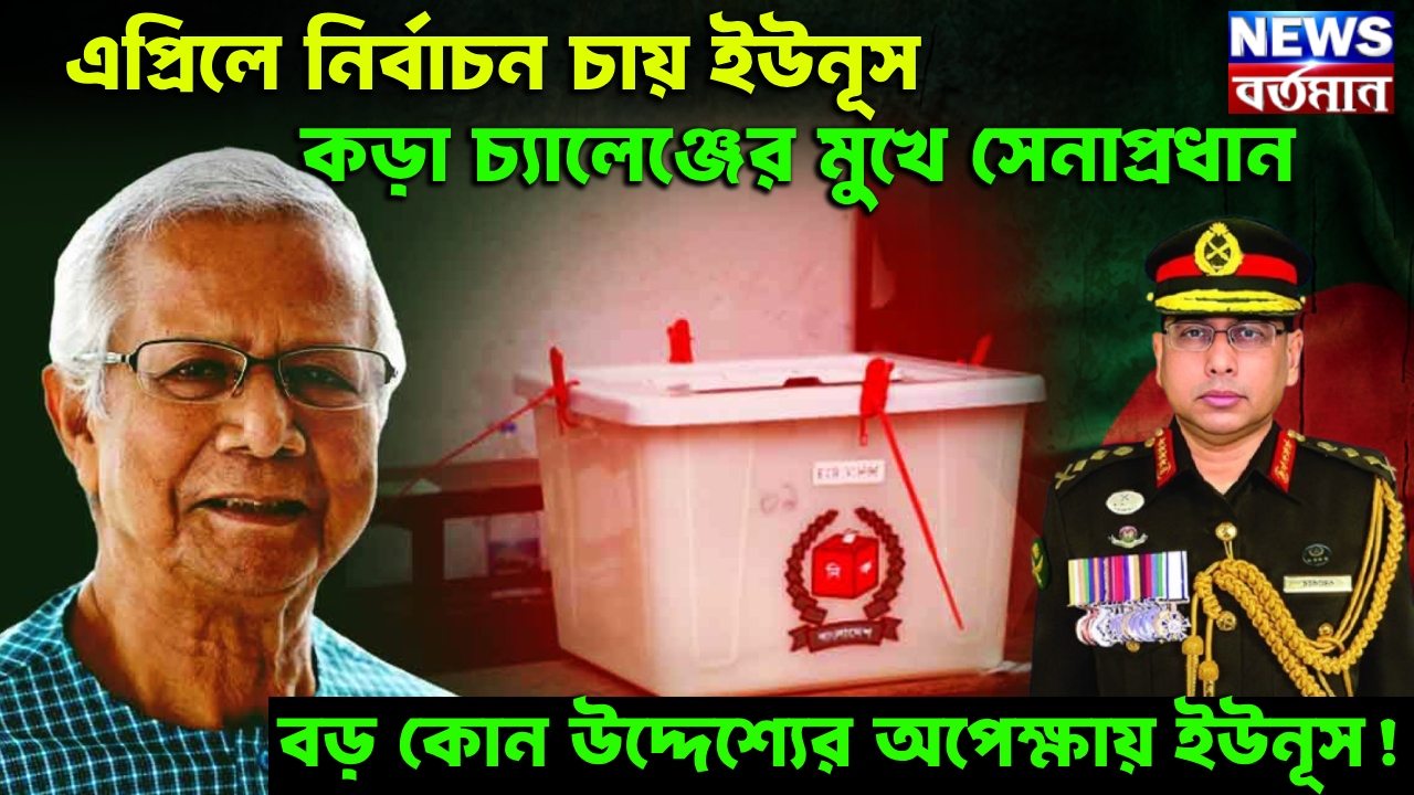 এপ্রিলে নির্বাচন চায় ইউনূস। কড়া চ্যালেঞ্জের মুখে সেনাপ্রধান। বড় কোন উদ্দেশ্যের অপেক্ষায় ইউনূস!