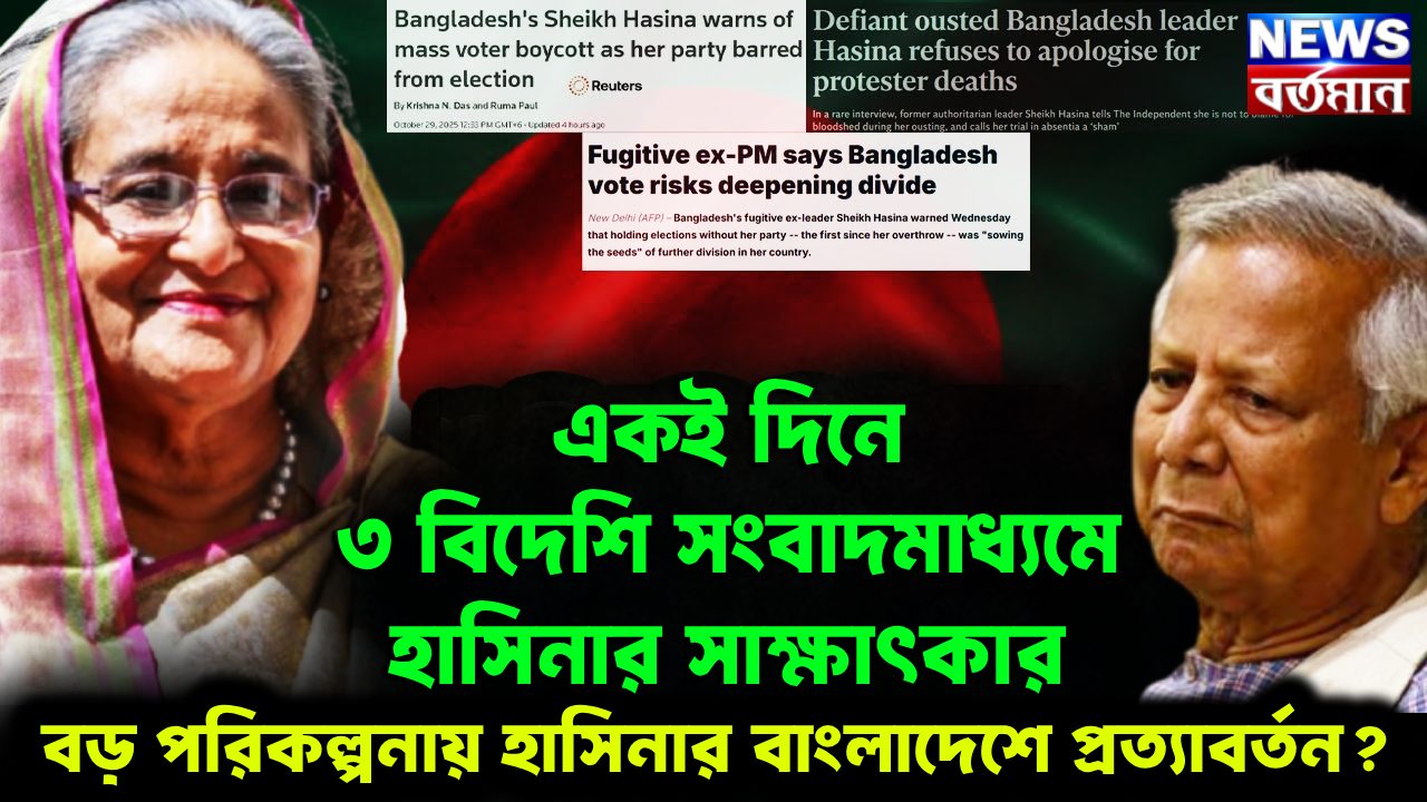এই বিবৃতির ঠিক পরের দিন বিশ্বের প্রথম সারির তিন গণমাধ্যম তাঁর একটি সাক্ষাৎকার প্রকাশ করে। দুটি গণমাধ্যমের শিরোনাম এক। একটি গণমাধ্যম তাদের প্রতিবেদনের শিরোনামে সামান্য বদল ঘটিয়েছে। যদিও তিনটি সাক্ষাৎকারের মুল সুর একটাই। এই সাক্ষাৎকারের প্রকাশকাল কিন্তু নজর কাড়ার মতো। বাংলাদেশের আন্তর্জাতিক অপরাধ ট্রাইব্যুনালে শেখ হাসিনার বিরুদ্ধে দায়ের হওয়ার মামলার শাস্তির তারিখ ঘোষণা করা হবে আগামী ১৩ নভেম্বর। তার আগে প্রকাশিত হল এই সাক্ষাৎকার। আরও একটি বিষয়ের উল্লেখ করতে হয়। আওয়ামী লীগ এবং হাসিনার ওপর থেকে নিষেধাজ্ঞা তুলে নেওয়ার জন্য ইউনূস সরকারকে নানা প্রান্ত থেকে চাপ দেওয়া হচ্ছে। এই ইস্যুতে নোবেল ম্যান আরও কোণঠাসা। হাসিনার সাক্ষাৎকার তাঁর মাথায় বজ্রপাতের সামিল। কোনও কোনও প্রান্ত থেকে বলা হচ্ছে, এই সাক্ষাৎকার প্রকাশের জন্য কয়েকটি লবি ফার্ম কাজ করেছিল। তার জন্য আওয়ামী লীগের তরফ থেকে মোটা টাকা বিনিয়োগ করা হয়েছে।