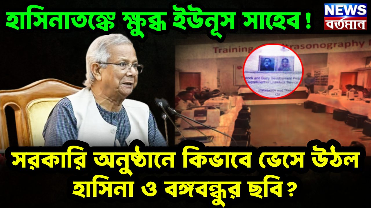 হাসিনাতঙ্ক যেন কিছুতেই পিছু ছাড়ছে না মুহাম্মদ ইউনূসের। এবারে সরকারি এক কর্মশালায় অনুষ্ঠান চলাকালীন শেখ হাসিনা ও বঙ্গবন্ধু শেখ মুজিবর রহমানের ছবি। যা নিয়ে তুমুল বিতর্ক সৃষ্টি হয়েছে বাংলাদেশে। ফলে স্বভাবতই মুখ পুড়লো ইউনূস সরকারের।