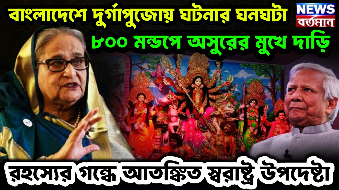 গন্ধ পেয়েছেন বাংলাদেশের তদারকি সরকার প্রধান মহম্মদ ইউনূস। এবার গন্ধ অসুরের মুখে দাড়ি নিয়ে। বাংলাদেশের প্রায় ৮ শো মণ্ডপের দুর্গা প্রতিমায় অসুরের মুখে দাড়ি রাখার ঘটনায় তিনি এবং তার ‘সরকারি বন্ধুরা’ ভারতের হাত দেখছেন। নিরাপত্তা ও আইন-শৃঙ্খলা পরিস্থিতি নিয়ে রবিবার তাঁর দপ্তরে কোর কমিটির বৈঠক বসে। সেই বৈঠকের পর স্বরাষ্ট্র উপদেষ্টা জাহাঙ্গির আলম চৌধুরী জানান, সংখ্যালঘুদের বৃহত্তম উৎসবের মধ্যে সাম্প্রদায়িক উত্তেজনা ছড়ানোর জন্য বিভিন্ন মণ্ডপের প্রতিমায় অসুরের মুখে দাঁড়ি লাগানো হয়েছে। এ বিষয়ে থানায় সাধারণ ডায়েরি করা হয়েছে। তদন্ত চলছে। তবে এখনও কেউ গ্রেফতার হয়নি।