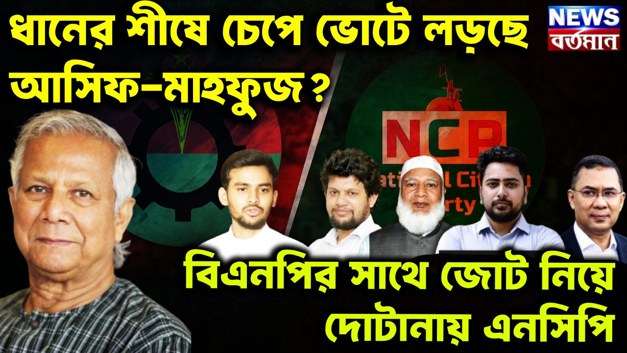 গত বছর জুলাই গণঅভ্যুত্থানে ছাত্র সমাজের নেতৃত্ব দেওয়া নেতাদের ভোটে লড়ার বিষয়ে অন্তর্বর্তী সরকারের একাধিক উপদেষ্টাও চান বিএনপির সঙ্গে জোট করুক এনসিপি। তবে জানা যাচ্ছে, বিএনপির সঙ্গে জোটে যেতে রাজি নন এনসিপির আহ্বায়ক নাহিদ ইসলাম ও সদস্য সচিব আখতার হোসেন। যদিও তাঁদের অভিমত এনসিপির চাহিদা পূরণ হলেই এই জোট বা সমঝোতা হতে পারে। বিভিন্ন সূত্রে জানা যাচ্ছে, বিএনপিও মনে প্রাণে চাইছে এনসিপি তাঁদের সাথে জোট করে নির্বাচনে লড়ুক। এতে তাঁদেরও সুবিধা। কারণ, জামায়তে ইসলামী বাংলাদেশ যেভাবে একের পর এক বিশ্ববিদ্যালয়ের ছাত্র সংসদ নির্বাচনে বাজিমাত করেছে তাতে আসন্ন ভোটে তাঁরা অনেকটাই সুবিধাজনক অবস্থানে রয়েছে। এই মুহূর্তে বিএনপির সঙ্গে সম্পর্ক খুব একটা মধুর নয় জামাতের। জামাত চাইছে তাঁদের সহয়োগী দলগুলির সাথেই জোট করে ভোটে লড়তে। এনসিপিকেও খুব একটা পাত্তা দিতে নারাজ জামাত নেতৃত্ব। ফলে আসন্ন নির্বাচনে ধানের শীষের মাথায় চেপেই ভোট বৈতরণী পার করার চেষ্টা করবে এনসিপি। এটাই মনে করছেন রাজনৈতিক বিশ্লেষকদের একাংশ।