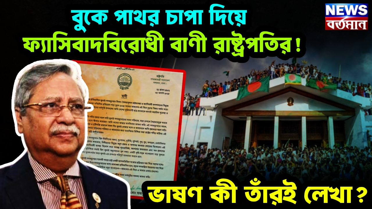 ফলে ইতিমধ্যেই জল্পনা শুরু হয়েছে রাষ্ট্রপতির ভাষণ কি মহম্মদ ইউনুস সরকারের লিখে দেওয়া? নাকি রাষ্ট্রপতি পদে টিকে থাকার জন্য সাহাবুদ্দিন চুপ্পু নিজেই ডিগবাজি খেলেন? যেমনটা বাংলাদেশের সেনাপ্রধান জেনারেল ওয়াকার উজ জামান ডিগবাজি খেয়েছেন। বাংলাদেশের রাষ্ট্রপতি বলছেন, বৈষম্য মূলক রাষ্ট্র ব্যবস্থা ও ফ্যাসিবাদী অপশাসনের বিরুদ্ধে ছাত্র শ্রমিক জনতা সম্মিলিত প্রতিরোধ গড়ে তুলে ২০২৪ সালের আজকের এই দিনে চূড়ান্ত বিজয় অর্জন করেছিল। ঐতিহাসিক এই অর্জনের বর্ষপূর্তি উপলক্ষে আমি দেশের মুক্তিকামী ছাত্র জনতাকে জানাই আন্তরিক শুভেচ্ছা ও অভিনন্দন। অথচ, এই এক বছরে বহুবার রাষ্ট্রপতিকে সরানোর ব্যর্থ প্রচেষ্টা হয়েছে বাংলাদেশে। এমনকি বাংলাদেশের কয়েকটি গুরুত্বপূর্ণ দিনে সাহাবুদ্দিন চুপ্পুকে চূড়ান্ত হেনস্থা করেছে ছাত্র জনতার একাংশ। যা বাংলাদেশের গণমাধ্যমেও উঠে এসেছিল। রাষ্ট্রপতি তার ভাষণে বলেছেন, জুলাই গণঅভ্যুত্থান ছিল দীর্ঘদিনের বঞ্চনা, দুঃশাসন, দুর্নীতি, লুটপাট, গুম, খুন, অপহরণ ভোটাধিকারহরণসহ সব ধরনের অত্যাচার নিপীড়নের বিরুদ্ধে তরুণ প্রজন্ম ও আপামর জনতার ক্ষোভের বিস্ফোরণ। তিনি আরও বলেন, এই বৈষম্য মূলক ফ্যাসিবাদী ব্যবস্থা বিলোপ করে গণতন্ত্র পুন:প্রতিষ্ঠা, জনগণের ক্ষমতায়ন এবং মত প্রকাশের স্বাধীনতাকে সুনিশ্চিত করাই ছিল জুলাই গণঅভ্যুত্থানের মূল লক্ষ্য।