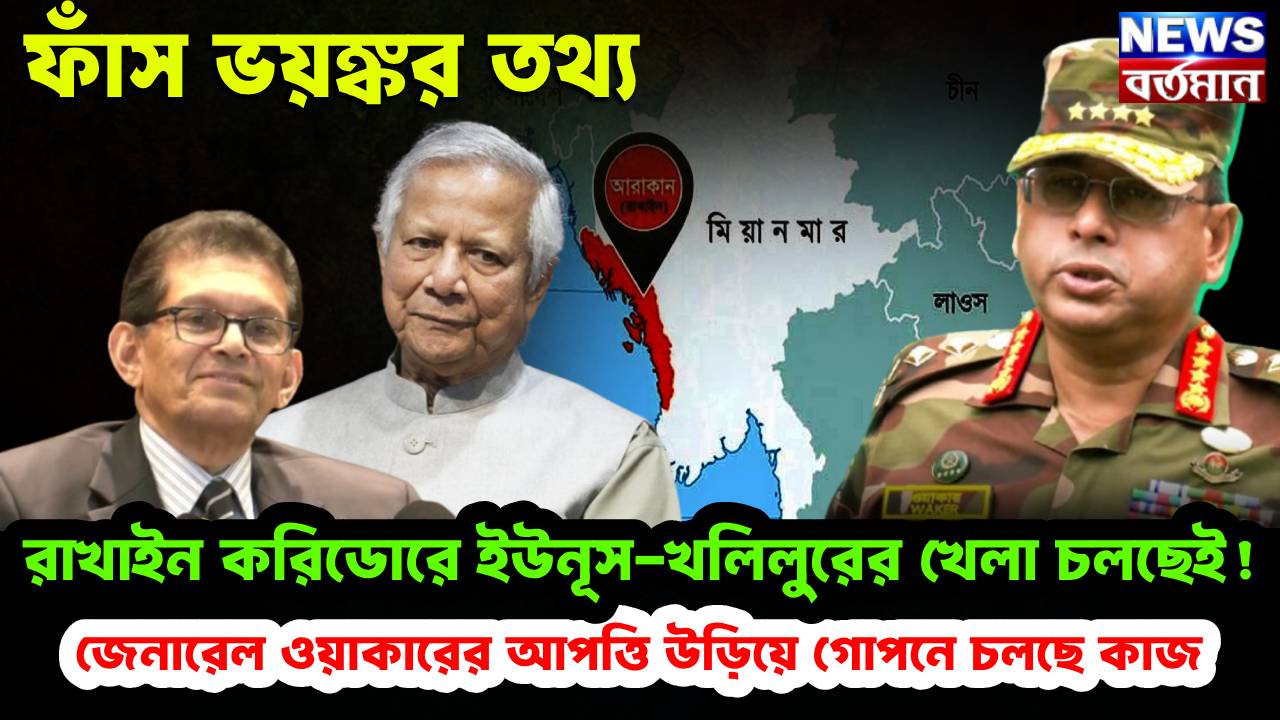 মিয়ানমারের রাখাইন রাজ্যে মানবিক করিডোর তৈরি করে খাদ্য, পোশাক ও অন্যান্য প্রয়োজনীয় রসদ পৌঁছে দেওয়া হবে স্বসস্ত্র বিদ্রোহী জনগোষ্ঠী আরাকান আর্মির কাছে। এই পরিকল্পনা নাকি জাতিসংঘের। এমনটাই দাবি করেছিল বাংলাদেশের অন্তর্বর্তীকালীন সরকার। কিন্তু জাতিসংঘের আড়ালে যে মার্কিন যুক্তরাষ্ট্র রয়েছে সেটা বুঝতে বাকি ছিল না বাংলাদেশের সেনাপ্রধান জেনারেল ওয়াকার উজ জামানের। ফলে বাংলাদেশের তিন সশস্ত্র বাহিনীর প্রধান এই করিডোর দেওয়া নিয়ে তীব্র আপত্তি জানান। এমনকি এই ধরণের কোনও করিডোর দেওয়া যাবে না বলেও জানিয়ে দেয় বাংলাদেশ সেনাবাহিনী। এই বিতর্কিত “মানবিক করিডোর” বাংলাদেশের জাতীয় নিরাপত্তা উপদেষ্টা খলিলুর রহমানের মস্তিষ্কপ্রসূত। তাঁকে বাংলাদেশের জাতীয় নিরাপত্তা উপদেষ্টা হিসেবে নিয়োগ দেওয়ার পাশাপাশি সেনাবাহিনীরও দায়িত্ব দেওয়া হয়। যা নিয়ে তীব্র মতপার্থক্য তৈরি হয় বাংলাদেশের অন্তর্বর্তী কালীন সরকারের প্রধান উপদেষ্টা মুহাম্মদ ইউনূস এবং বাংলাদেশ সেনাবাহিনীর প্রধান জেনারেল ওয়াকার উজ জামানের মধ্যে। তাৎপর্যপূর্ণ বিষয় হল, সেনাপ্রধানদের এত আপত্তি সত্ত্বেও বাংলাদেশ সেনাবাহিনীর একটি অংশ রাখাইন করিডোরের রুট চিহ্নিতকরণ এবং অন্যান্য সম্পর্কিত কৌশলগত পদক্ষেপ অব্যাহত রেখেছে।