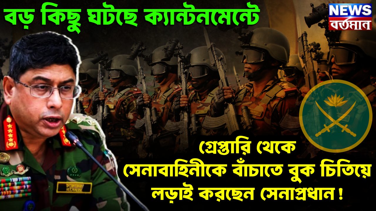 কিন্তু তাঁর রাস্তা কোথায়? কীভাবেই বা সেনাপ্রধান তাঁর প্রাক্তন এবং কর্মরত সহকর্মীদের রক্ষা করবেন। উত্তরপাড়া সূত্রে পাওয়া খবরে জানা গিয়েছে সেনাপ্রধান ওয়াকার সম্প্রতি বাহিনীর কোর কমিটির সঙ্গে বৈঠক করেন। বৈঠকে এই নিয়ে কথা হয়। যদিও বাহিনীর এতজন প্রাক্তন এবং কর্মরত সেনাসদস্যদের গ্রেফতারের ঘটনায় জেনারেল ওয়াকারের বিশ্বাসযোগ্যতা নিয়ে প্রশ্ন উঠতে শুরু করেছে। তরুণ কর্মকর্তাদের একাংশ মনে করছেন, তাদের অভিভাবক কোনও সিদ্ধান্ত নিতে পারেন না। তাদের মধ্যে একটা চাপা আতঙ্কা কাজ করছে। তাদের মনে হয়েছে, সেনাপ্রধান তাদের রক্ষা করতে পারবেন না। বাহিনীর সম্মান ভূলুণ্ঠিত হয়েছে। তাই, তারা বাহিনীর বেশ কয়েকজন শীর্ষকর্তার সঙ্গে বৈঠক করেছেন। বৈঠকের মূল উদ্দেশ্য প্রাক্তন এবং কর্মরত সদস্যদের সম্মানের সঙ্গে উদ্ধার করা। একটা মত উঠে আসছে আন্তর্জাতিক ট্রাইব্যুনাল এই মামলা সেনা আদালতকে হস্তান্তর করবে। যদিও সেই সম্ভাবনা ক্ষীণ বলে উড়িয়ে দিয়েছেন ট্রাইব্যুনালের চিফ প্রসিকিউটরদের দাবি, এই আইন বাংলাদেশের সব নাগরিকদের ক্ষেত্রে প্রযোজ্য। তাই, কেউ সেনাবাহিনীতে চাকরি করে থাকলেও অপরাধ ট্রাইব্যুনালে তাঁর বিচার করা যাবে না বলে কোনও সংস্থান নেই। যদিও অন্য একটি সূত্র বলছে, সেনাপ্রধান ওয়াকার আপ্রাণ চেষ্টা চালিয়ে যাচ্ছেন। কারণ, তিনি জানেন এই ঘটনাকে কেন্দ্র করে বাহিনীতে অভ্যুত্থান ঘটলে সবার আগে তাঁকে নিশানা করা হবে।