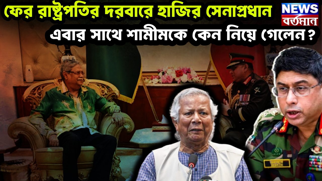 বাংলাদেশের একাধিক মহলের দাবি, বাংলাদেশের সেনাপ্রধান জেনারেল ওয়াকার উজ জামানকে অপসারণ করতে উঠে পড়ে লেগেছে ইউনূস সরকারের একটা প্রভাবশালী অংশ। মুহাম্মদ ইউনূসও চাইছেন জেনারেল ওয়াকারের অপসারণ। কিন্তু ইউনূসের মতোই ক্ষমতায় টিকে থাকার জন্য জেনারেল ওয়াকার নানা ভাবে আপস করছেন বাংলাদেশের মানুষের স্বার্থ এবং জাতীয় নিরাপত্তায়। ২০২৬ সালের ফেব্রুয়ারি মাসে জাতীয় নির্বাচনের ঘোষণা দিয়েছেন মুহাম্মদ ইউনূস, অর্থাৎ ধরেই নেওয়া যায় তিনি ওই পর্যন্ত ক্ষমতায় থাকছেন। তেমনই জেনারেল ওয়াকারের মেয়াদও ২০২৬ সাল পর্যন্ত। বাংলাদেশের রাজনৈতিক মহলে একটা প্রশ্ন ঘুরপাক খাচ্ছে, কে এই সময়সীমার আগে যাবে। এই আবহে কয়েকদিনের ব্যবধানে জেনারেল ওয়াকার দেখা করলেন রাষ্ট্রপতি সাহাবুদ্দিন চুপ্পুর সঙ্গে। কিন্তু সঙ্গে করে তাঁর বাংলাদেশ সশস্ত্র বাহিনী বিভাগের প্রিন্সিপাল স্টাফ অফিসারকে নিয়ে যাওয়ার কারণ নিয়েও চলছে চর্চা। কেউ কেউ বলছেন, জেনারেল ওয়াকারের পর তাঁরই সেনাপ্রধান হওয়ার কথা। তাই আগেভাগেই তিনি সেই দায়িত্ব বুঝিয়ে দিতে চাইছেন। অপরদিকে অন্য দলের দাবি, সেনাপ্রধান আসলে বাংলাদেশের সাম্প্রতিক কয়েকটি ঘটনা সম্পর্কে অবহিত করতে গিয়েছিলেন। এই মুহূর্তে বাংলাদেশে আলোচনা চলছে, মুহাম্মদ ইউনূসের প্রস্থান নিয়ে। দেশের মধ্যে এবং দেশের বাইরেও চলছে এই আলোচনা। আবার উল্টে দিকে সেনাপ্রধানের অপসারণের জন্যও চক্রান্ত চলছে। এই সব নিয়েই আলোচনা হয়েছে সেনাপ্রধান ও রাষ্ট্রপতির সঙ্গে। আগামী ২১ অক্টোবর অন্তর্বর্তী সরকারের বিষয়ে বাংলাদেশ সুপ্রিম কোর্টে ফাইনাল শুনানি আছে। কিন্তু তার আগেই যদি মুহাম্মদ ইউনূসকে সরিয়ে দেওয়া হয়, তাহলে রাষ্ট্রপতির ভূমিকা কি হবে সে নিয়েই দুজনের আলোচনা হয়েছে বলে জানা গিয়েছে।