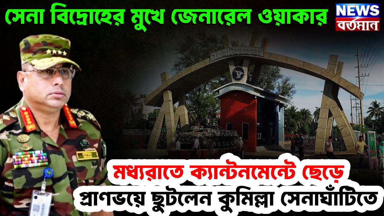 গত বছরের ৫ ই অগাস্ট বাংলাদেশের সেনপ্রধান ওয়াকার – উজ – জামানের নেতৃত্বে সেনা অভ্যুত্থানের মুখে দেশ ছেড়ে পালিয়ে যান তৎকালীন প্রধানমন্ত্রী শেখ হাসিনা। এরপরই সেনাবাহিনী থেকে শেখ হাসিনার ঘনিষ্ট মুক্তিযোদ্ধাপন্থী আধিকারিকদের বরখাস্ত করার পাশাপাশি তাদের বিরুদ্ধে গুম, খুন ও আয়নাঘর কাণ্ডে মানবতাবিরোধী অপরাধে মামলা করা হয়। শেখ হাসিনার বিচারের জন্য গঠিত আন্তর্জাতিক অপরাধ ট্রাইব্যুনালের তরফে গত ৮ ই অক্টোবর ২৫ জন সেনা আধিকারিকের বিরুদ্ধে গ্রেফতারি পরোয়ানা জারি করা হয়। তাদের মধ্যে ইতিমধ্যেই ১৫ জনকে হেফাজতে নেওয়া হয়েছে। সেনাবাহিনীর এডজুটেন্ট জেনারেল মেজর জেনারেল এমএইচ হাকিমুজ্জামান গত শনিবার ঢাকা সেনা নিবাসে সাংবাদিক সম্মেলনে ১৪ কর্মরত আধিকারিক সহ ১৫ জনকে গ্রেফতারের কথা জানান। এরপরেই অস্থিরতা ও অসন্তোষ ছড়িয়ে পড়ে সেনা জওয়ান ও আধিকারিকদের মধ্যে। আটক আধিকারিকদের মুক্তির দাবিতে বিদ্রোহও ঘোষণা করেছেন তারা। এরপরই প্রাণ বাঁচাতে ঢাকা ছেড়ে কুমিল্লা সেনাঘাঁটিতে গা ঢাকা দিয়েছেন জামায়াত ই ইসলামের ঘনিষ্ট সেনাপ্রধান ওয়াকার।