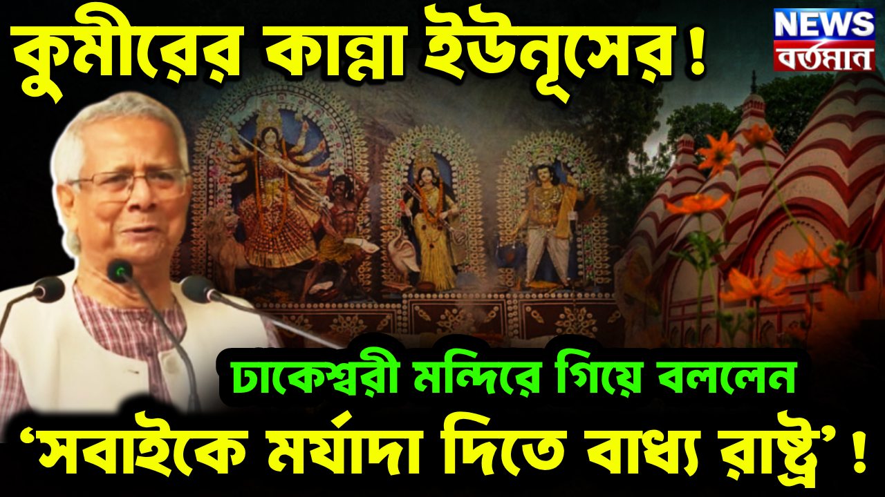 রাজনৈতিক মহলের দাবি, আসলে চাপে পড়েই তিনি এখন সংবিধানের কথা বলছেন। কিন্তু তাঁর সরকারই বাংলাদেশের সংবিধান পাল্টে ফেলার চেষ্টায় ছিল। জামাত, এনসিপি নেতাদের দাবি মেনে জুলাই ঘোষণাপত্রের মাধ্যমে ধর্মনিরপেক্ষ বাংলা্দেশকে ইসলামিক রিপাবলিক দেশে রূপান্তরিত করার চেষ্টায় ছিলেন। কিন্তু রাজনৈতিক ও আন্তর্জাতিক বাঁধায় তিনি তা করে উঠতে পারেননি। বাংলাদেশে সংখ্যালঘুদের প্রতি অত্যাচার নিয়ে আন্তর্জাতিক আঙিনায় ব্যাপক সমালোচনা শুরু হয়েছে। বিশেষ করে ইউরোপীয় দেশগুলি সরব হচ্ছে। জানা যাচ্ছে, খুব শীঘ্রই ইউরোপীয় ইউনিয়নের মানবাধিকার সংক্রান্ত এক প্রতিনিধি দল ঢাকায় আসছেন। তাঁরা বাংলাদেশের মানবিধাকার এবং আইনশৃঙ্খলা পরিস্থিতি সরেজমিনে খতিয়ে দেখবেন বলে জানা যাচ্ছে। তাই ঠেকায় পড়ে মুহাম্মদ ইউনূস ছুঁটলেন ঢাকেশ্বরী মন্দিরে। আস্বস্ত করলেন দুর্গাপুজোর সময় সবরকম সাহায্য ও নিরাপত্তা দেওয়া নিয়ে। নিন্দুকেরা বলছেন, এটা আসলে কুমীরের কান্না।