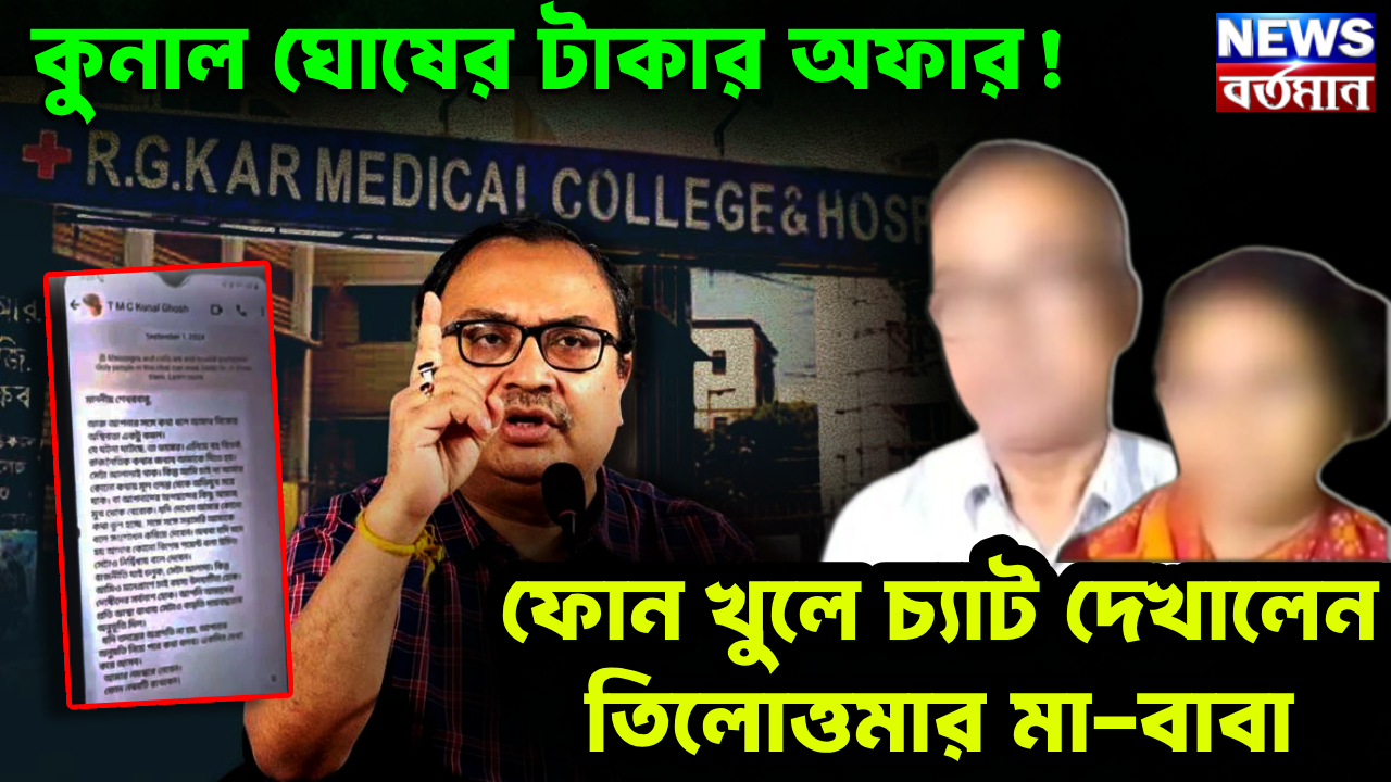 এরপরই বিস্ফোরক অভিযোগ করেন নির্যাতিতার মা। তিনি বলেন, আমাদের সঙ্গে উনি টাকা দিয়ে বিষয়টি রফা করার কথা বলেছিলেন। আমাদের বাড়িতে আসেননি। কিন্তু বলেছিলেন, টাকা দিয়ে বিষয়টি মিটিয়ে নেওয়ার জন্য। এরপরই ফোন বের করেন নির্যাতিতার বাবা। এবং তিনি সাংবাদিকদের দেখান। সেখানে নাম লেখা কুণাল ঘোষের। এমনকি তিনি বলেন, কুণাল ঘোষ বিভিন্ন সময় আমাদের পরামর্শ দেওয়ার চেষ্টা করেছেন। আমরা ঠিক পথে যাচ্ছি, নাকি ভুল পথে। তখনই অবশ্য সাংবাদিকরা প্রশ্ন করেন, টাকার বিষয়টি? উত্তরে নির্যাতিতার বাবা বলেন, সেটির কল রেকর্ডিং নেই। কারণ সেটি ওয়াটসআপ কল ছিল। তাই এটি নিয়ে কিছু বলব না। ঠিক কি অভিযোগ করছেন তারা,শুনুন