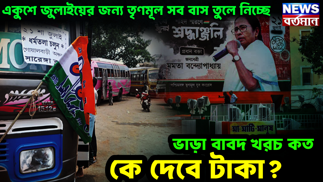 একুশে জুলাইয়ের জন্য তৃণমূল সব বাস তুলে নিচ্ছে ভাড়া বাবদ খরচ কত, কে দেবে টাকা?
