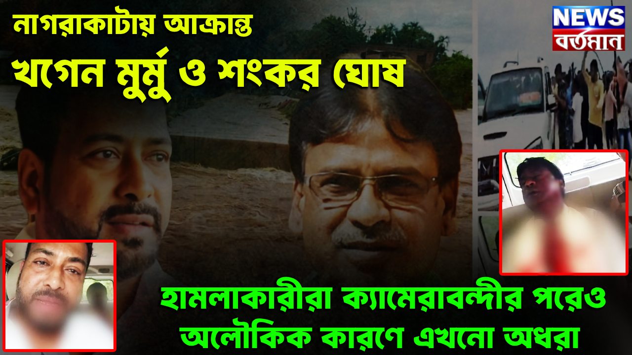 উত্তরবঙ্গের নাগরাকাটায় বন্যা বিপর্যস্ত এলাকা পরিদর্শন ও ত্রাণ দিতে গিয়ে প্রকাশ্যে ভয়ঙ্কর হামলার মুখে পড়েন বিজেপি সাংসদ খগেন মুর্মু ও বিধায়ক শঙ্কর ঘোষ। পাথরের আঘাতে গুরুতর জখম হয়ে রক্তাক্ত হন সাংসদ খগেন মুর্মু। তার নাক মুখ ফেটে রক্ত ঝরছে। রক্তে ভিজে গেছে তার জামা ও রুমাল। ভেঙে দেওয়া হয় তার গাড়ির সমস্ত কাঁচ। পাশাপাশি ধাক্কা ও চড় মারা হয় বিধায়ক শঙ্কর ঘোষকে। তৎক্ষণাৎ সেইখান থেকে খগেন মুর্মু ও শঙ্কর ঘোষকে স্থানীয় এক স্বাস্থ কেন্দ্রে নিয়ে যাওয়া হয়। পরে সেইখান থেকে শিলিগুড়ির এক বেসরকারি হাসপাতালে স্থানান্তরিত করা হয়। চিকিৎসকেরা জানান, খগেন মুর্মুর চোখের নিচের অংশের একটি হাড় ভেঙে গিয়েছে এবং যা খুব শ্রীগ্রই অস্ত্রপ্রচার প্রয়োজন হতে পারে। সোমবার থেকেই তাকে ক্রিটিক্যাল কেয়ার ইউনিটে রাখা হয়েছে। বর্তমানে তার একাধিক স্ক্যান ও মেডিক্যাল টেস্ট চলছে। তার শারীরিক অবস্থা উদ্বেকজনক হলেও নিয়ন্ত্রণে আছে। চিকিৎসকদের পর্যবেক্ষণে রয়েছেন তিনি। অন্যদিকে বিধায়ক শঙ্কর ঘোষের মাথায় আঘাত থাকলেও তিনি এখন অনেকটাই সুস্থ।